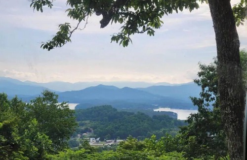 2 Bedroom Cabin with beautiful sunrise views of Lake Chatuge and sunset views from the front porch. The Cabin is centrally located to various outdoor activities from hiking, boating and horseback riding. Come relax and unwind on top of a mountain. Many relaxing amenities including hot tub, pool table with bar area, 70 inch TV, indoor electric and gas fireplaces, outdoor propane firepit with 3 decks and a solorium to enjoy the views. the basement is one large room with walkout to hot tub/firepit