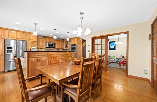 This house has plenty to keep both adults and kids entertained, from a game room with a ping pong table, a foosball table, an indoor electronic basketball game, board games to a kids play area with toys just for the little ones. There is also a theater set up in the basement, complete with a wet bar and cozy fireplace.