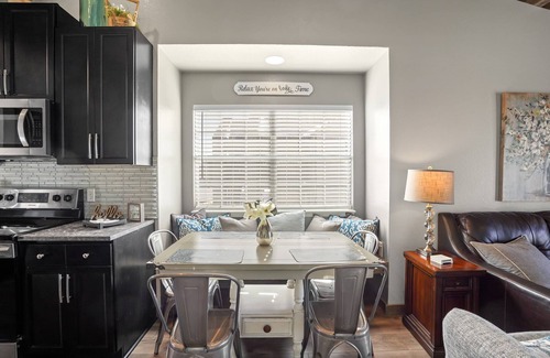 The living room is great for lounging around after a day of exploring the area. Kick back and relax on the comfortable couch while watching your favorite shows on the large flat-screen TV or gather around the table for a board game competition with the kiddos. You'll also have access to high-speed Wi-Fi throughout the condo.