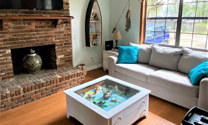 This beautifully updated home is decorated for fishing enthusiast, , but it is a very comfortable retreat that is fun and whimsical. Inside we have newer, cozy furniture as well as 2 TV sets and plenty of games and puzzles.