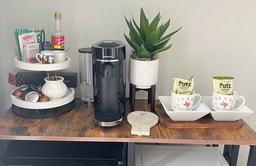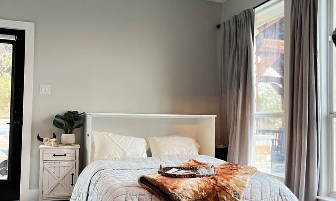 Enjoy stunning views of Lake Travis in our cozy bedroom with an attached full bathroom connected to the family home. Bedroom features a queen bed with premium linens, a modern bathroom hairdryer included, WiFi, and AC.