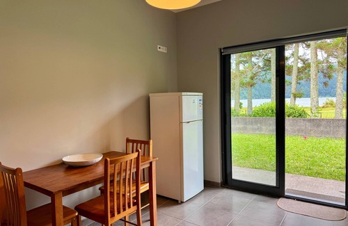 Lakeview Green Paradise is located on the stunning Sete Cidades lake, offering incredible views and a peaceful setting for up to 6 people. The house features two bedrooms with double beds (1,40 x 1,90 m), one bedroom with two single beds (0,90 x 1,90 m), a dining and living room with a TV and a fireplace for colder winter days, a fully equipped and functional kitchen, ideal for preparing meals with ease, and a bathroom with a bathtub.