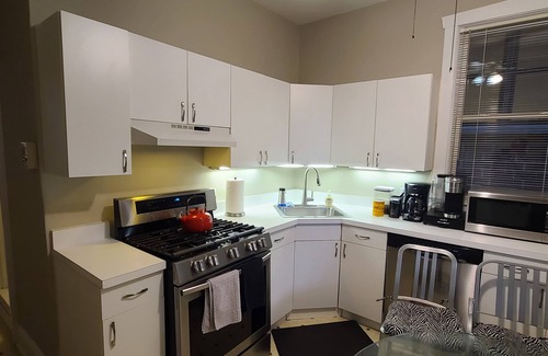 The apartment is the 1st floor of a vintage 2 flat with natural woodwork and updated and fully equipped kitchen and bath. It is comfortably and tastefully decorated to make you feel at home. Just unpack your bags and make this your home away from home. Our beds and linens are high quality insuring a good nights sleep.