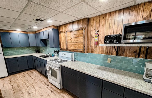 The Lodge was recently freshened up. There is new paint throughout the 4 bedrooms and the 4 upstairs bathrooms. New ceiling tiles and lighting has brightened up the dining/living great room. The kitchen is fully equipped with 2 refrigerators, gas range, microwave, toaster, and coffee maker. Off the kitchen, the great room offers a spacious living room and dining room area. The dining area features a large table to seat your family and friends. When you aren’t on the lake, you can relax on the deck looking out at the beauty all around. If that doesn’t suit you, you can lounge in front of a 65” smart TV playing your favorite Roku channels.