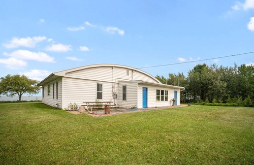 Perched on a scenic bluff, this one of a kind Quonset style home offers the perfect blend of tranquility and convenience. Nestled on 3 acres, its just minutes from Kewaunee and Algoma and 30 miles from both Green Bay and Door County. Whether you're sipping coffee with a sunrise view, stargazing by the fire, or exploring the Wisconsin coastline, this is your perfect getaway.