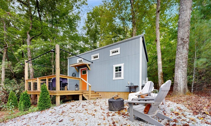 Lakeview tiny home with a loft, full kitchen, furnished deck, & firepit | Cabin in Mills River