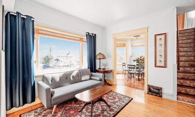 This house has all the charm of an old home (built in 1910), with fresh paint throughout, and luxury organic mattresses in each bedrooms. Additionally there are two sofa sleepers, one located in the living room and one in the back porch. The bedrooms are classically small (master bedroom has partial lake views) but the living space is very spacious and open. Warm light fills the home on sunny days and the home is equipped with basic kitchen amenities for cooking meals. A smart TV (don’t forget to bring your streaming passwords/account info) and wifi allows for you to work and enjoy your favorite downtime media. Off street parking in front of house for up to two vehicles.