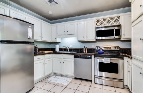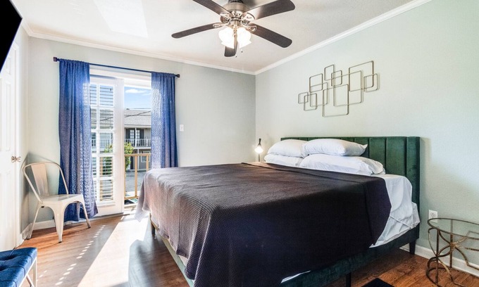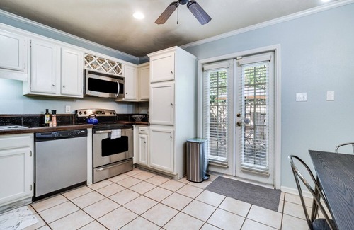 Best part of town. Stylish, family friendly townhome just blocks away from River Ranch and across from the Heart Hospital, 10 mins to downtown and Cajun Dome.. Style and comfort. With 2 master suites, each their own private bathrooms and walk in closets. King and Queen beds. Back patio with outdoor seating, lights and BBQ. Free washer & dryer and 2 parking spaces. Full coffee bar! 57 inch TV in the living room and a 40 inch in the bedroom. French doors and balcony feels like New Orleans. Lala Land is truly a unique find. Property includes driveway parking directly in front. Across the street from the Heart Hospital and Chase bank. Also a few blocks from River Ranch and all shopping, restaurants and stores. 10 mins to Cajun Dome, downtown and ULL campus. (Living downstairs and bed and bath upstairs)