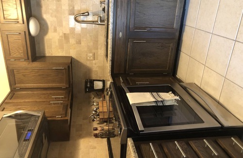 Kitchen will exceed all expectations. Appliances were purchased as new Whirlpool Stainless Steel. Dishwasher has stainless interior with noise level under 50db. Brita Stream water pitcher provided in fridge. Please do not reset Brita electronic filter counter; just use and refill. Microwave and range oven have convection capabilities and more features than can be listed. Easy clean glass cooktop. Electronic control can be programmed for Spanish/French in addition to default English. Please do not use self-clean oven feature. Manufacturer recommends using that feature sparingly. Counter tops are granite, backsplash is travertine, sink is composite granite with stainless Moen touchless faucet. Rice cooker. 4 slice toaster. Dishware place setting for four. Cloth napkins for special eat in meals.