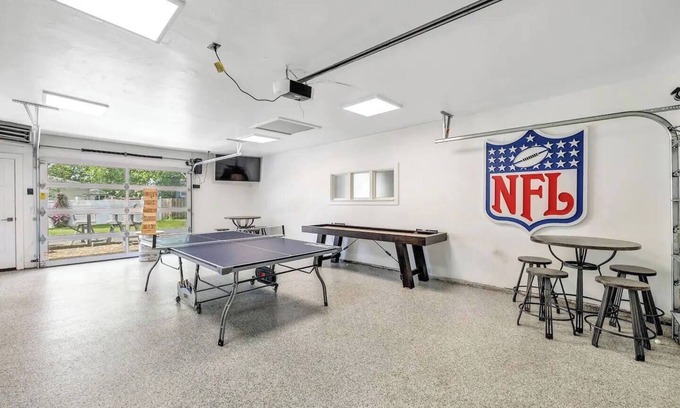 Lambeau Views + Tailgate Ready! Stay just steps from Lambeau Field with space for up to 12 guests! Enjoy a game-filled garage, hot tub, and backyard views of the stadium Perfect for Packers games, weddings, family gatherings and group getaways is located in Ashwaubenon. Lambeau Views + Tailgate Ready! Stay just steps from Lambeau Field with space for up to 12 guests! Enjoy a game-filled garage, hot tub, and backyard views of the stadium Perfect for Packers games, weddings, family gatherings and group getaways provides accommodation, featuring Child Friendly, Parking, Balcony/Terrace, among other amenities. This House features Child Friendly, Parking, Balcony/Terrace, to make your stay a comfortable one.