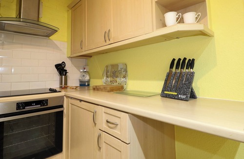 The kitchen is equipped with a refrigerator and a dishwasher, as well as an electric kettle, cookware, and a toaster. And there's a washing machine, so you can even pack a bit lighter. Other amenities at this 1-bedroom, 1-bathroom rental include heating and wardrobe or closet.