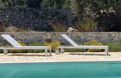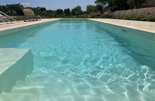 We are in the countryside between Ostuni and Cisternino, a few minutes from the beaches of Alto Salento and the center of Ostuni. Our structure is a traditional Lamia of the early '900 in stone once used as a millstone. It is a typical rural stone house in the Itria Valley, completely renovated thanks to local workers, two hectares of land around it, garden, orchard and patio. The property currently has 7 beds, three double bedrooms, an alcove with a single bed, 2 bathrooms, 1 kitchen, 1 kitchenette, living room. It has a large private swimming pool available exclusively to guests with large relaxation areas. The structure is immersed in the splendid countryside of the Itria Valley, therefore ideal for those who love the landscape of this corner of Puglia, for walking or cycling on the various cycle routes in the area. We provide guides. The beaches are a few kilometers away, and there is something for everyone.