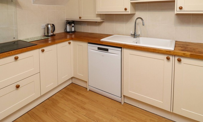 Amenities: Electric free standing heaters. Electric oven and hob, microwave, fridge/freezer, washing machine, tumble dryer, dishwasher. Smart TV, WiFi. Fuel and power inc. in rent. Bed linen and towels inc. in rent. Off-road parking for 1 car, additional roadside parking available. Private rear garden with patio, lawn and furniture. BBQ - please bring your own charcoal. Sorry, no smoking. Shop and pub 0.4 miles, beach 1.3 miles. Note: Cot and Highchair located under the stairs