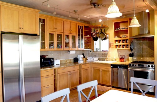 The Artists House, Permit # STLA 2017/0002 is a home away from home with the comfortable furnishings and great amenities. The fabulous Lana'i sunsets can be enjoyed outside on the deck where there is glass dining room table with 6 chairs and bbq to enjoy. There are two bedrooms, one comfortable king bed in the master bedroom which has a joined master bathroom and a comfortable queen bed in other bedroom. The living room has a sofa bed with a queen temper-pedic mattress and a single futon bed which is used as a loveseat as well if needed. There are two bathrooms, one with a jet tub and the other with a double head shower. There is an on-demand hot water heater so, there will always be hot water! There is an outdoor shower after the beach or just to be in the Lana'i Hawaiian air. No need to bring too many clothes as there is an LG washer and dryer that is top notch! The Artist's home is a fully renovated double insulated plantation home from the 1930's that will give you the feel of being back in time and yet, with all the amenities of comfort such as granite countertops, dishwasher, specialty wood floor, fans, etc . This home is owned and was fully renovated in 2009 by Jordanne, who started her fine art painting career in 2002 on Lana'i and now lives on Maui as a successful painter. Jordanne opened a one-woman Gallery called the Jordanne Gallery in Makawao, Maui in 2009. She resides in Maui with her husband and 2 young children. Her early artwork is on the walls of The Artists House and creates a lovely feeling of plantation life ambiance. She has used the actual pineapple grass and bamboo from Lana'i to create a beautiful subtle mural. You can swim at Manele Bay, play tennis, golf, attend free water aerobics at the local heated pool, hike the Munroe Trail, drive to different parts of the island such as Polihua Beach, Shipwreck Beach, Garden of The Gods, and then come home and enjoy the rest of the evening in the QUIET area of town at the Artists home. Lana’i is known for the roosters and they will crow at all hours of the day and night - Jordanne needed her own oasis where the crowing of roosters wouldn’t hinder her own living experience on Lana’i, so, she created this oasis. The location can’t be explained enough (worth any extra monies) as other rentals are based in the center of town where the roosters can be heard. The home is located in the old Japanese section where the surrounding neighbors are very respectful. Grocery shopping as well as retail is still a short 7 minute walk. There is a newly renovated movie theater that is also a short 7 min walk away. Car rentals are usually available through Jordanne's contacts. You can have dinner with a short walk to Pele's Other Garden (full bar available,) Cafe 565, the Blue Ginger, Lana’i Hotel (full bar) or Canoe’s or dine at the Artists House fully equipped kitchen. We hope you love your stay in the Artists House with Aloha!