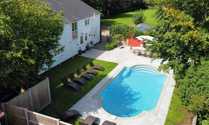 Outside, the three garden areas provide a fantastic choice of spaces to relax and play in, from the country cottage front garden to the huge lawn and garden room, and a large, heated swimming pool (open 1 May-30th September), with a surrounding patio, BBQ and lawn.