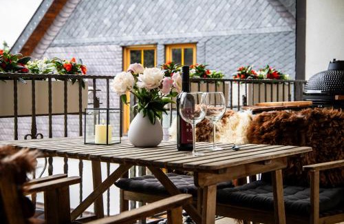 - Lovingly furnished vacation apartment with balcony and terrace in the Eastern Ore Mountains
