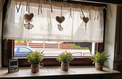 Public transport only runs one bus a few times a day, so a car is necessary. You can park in the yard, directly in front of the house on the side of the road (you can always find a parking space here), a free public parking lot is also only a few meters away. "Dorbert's Lädche" supplies baked goods and some groceries, magazines, tobacco products, etc., supermarkets, pharmacies, etc. can be found in Albisheim or Kirchheimbolanden (3 or 7 km away). Alzey, which is also only 14 km away and the nearest town, is suitable for larger purchases.