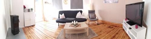 Offering free bikes, Landidylle Mertensdorf - Ferienwohnung provides accommodations in Triglitz. This apartment offers barbecue facilities. There's an outdoor fireplace and guests can use free Wifi and free private parking. Providing a terrace and inner courtyard views, the spacious apartment includes 1 bedroom, a living room, satellite flat-screen TV, an equipped kitchen, and 1 bathroom with a bath. Towels and bed linen are provided in the apartment. This apartment is allergy-free and non-smoking. You can play table tennis and darts at the apartment, and the area is popular for cycling and hiking. An indoor play area is also available at Landidylle Mertensdorf - Ferienwohnung, while guests can also relax in the garden. Rostock-Laage Airport is 60 miles away.