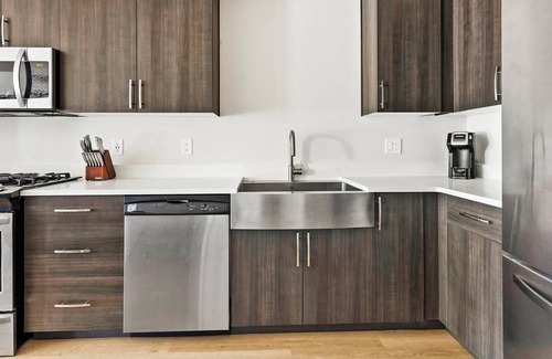 - Top-level duplex featuring a sleek open concept kitchen with stainless appliances, cozy fireplace, stylish furnishings, and in-unit washer/dryer. Designed for basking in the sun under skylights in thoughtful details throughout.