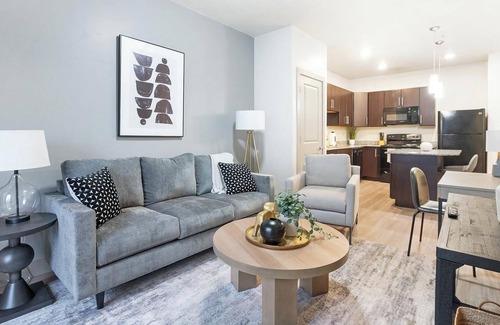 Wake up to mountain views and city perks in the heart of Sandy, Utah. Perfectly located for monthly or extended stays, Dry Creek at East Village puts you just steps from local shops, scenic trails, and the TRAX station. Enjoy fully-furnished apartments with full kitchens featuring granite countertops, smart home tech, in-unit laundry, and spacious walk-in closets. Lounge by the pool, soak in the hot tub, or head out to explore nearby outdoor adventures and downtown attractions.