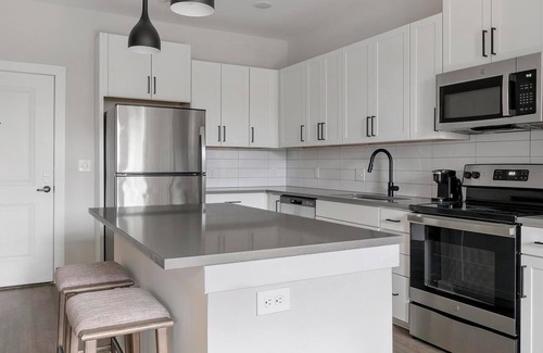 Step into comfort and style at Cadence Sugar Hill, your ideal stay for flexible, fully-furnished monthly or extended visits. Our spacious apartments feature full kitchens with stainless steel appliances, quartz countertops, and kitchen islands designed for cooking and entertaining. Enjoy nine-foot ceilings, wood-style flooring, and in-unit washer/dryers. Relax poolside at the resort-style pool, flow through yoga classes, or work from private office spaces.