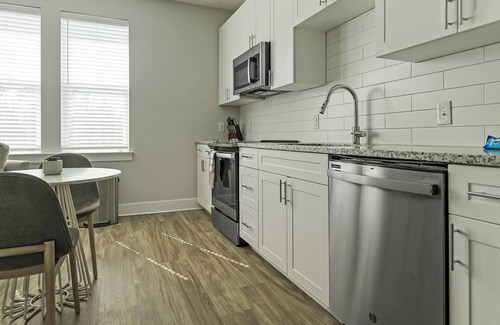 Chestnut Farm offers fully-furnished apartments perfect for flexible, monthly, or extended stays. Each home features a full kitchen with granite countertops, in-unit laundry, and thoughtful details that make settling in easy. Enjoy resort-style amenities like a pool with a sun shelf, 24-hour fitness center, yoga studio, and outdoor game court. Spend your downtime exploring nearby greenways, Colonel Francis Beatty Park, or the shops and restaurants of downtown Matthews.