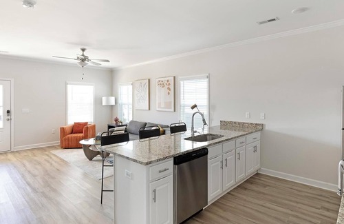 Need a quick getaway or a comfy spot to settle in near Huntsville, AL? The Cottages at Oak Grove Dairy have you covered with fully-furnished apartments just off Highway 231. Perfect for short-term stays, weekend trips, or extended stays, each home includes a full kitchen, in-unit laundry, stylish furnishings, and fast WiFi. Chill by the resort-style pool, break a sweat in the fitness center, or relax by the fire pit.