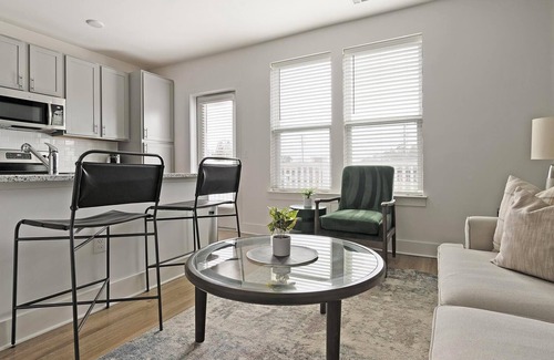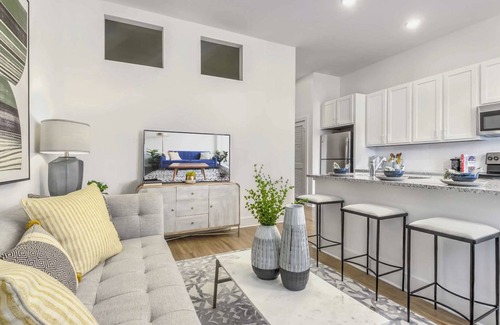 Just south of Charlotte in charming Indian Land, enjoy a flexible, fully furnished stay at The Mason at Six Mile Creek with the best of both worlds: peaceful suburban vibes and easy access to city life. Perfect for monthly or extended stays, our spacious apartments feature full kitchens with granite countertops, shaker-style cabinetry, stainless steel appliances, and fast WiFi. Start your day in the coworking loft or yoga room, then unwind by the resort-style pool or outdoor bar.