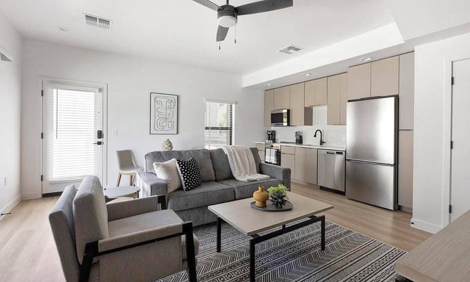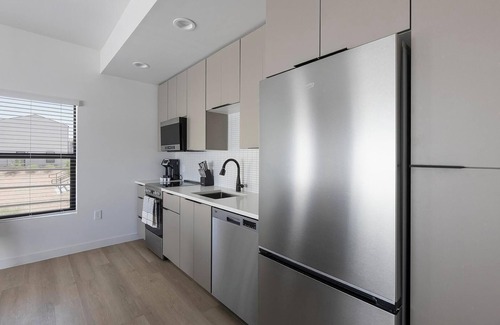 Located in the heart of Maricopa County, 2121 is perfect for monthly or extended stays. Our fully-furnished apartments feature soaring 9-foot ceilings, sleek stainless steel kitchens, and quartz countertops for a modern, elevated feel. Take a dip in the resort-style pool, hit your goals in the Technogym fitness center, or relax in the luxury clubhouse.