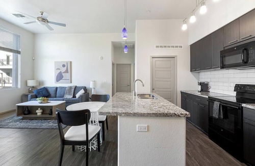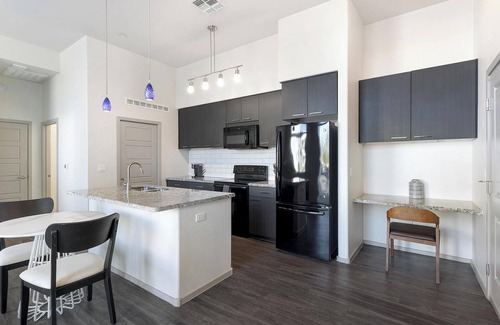 Stay in the heart of Glendale at Velaire at Aspera! Perfect for flexible stays, our fully-furnished apartments boast full kitchens with granite countertops and upgraded appliances, oversized walk-in closets, stylish furnishings, and fast WiFi. Outside your door, enjoy resort-style amenities including a 24-hour fitness center, surround-sound theater, bocce ball court, shaded playground, and a dog park.