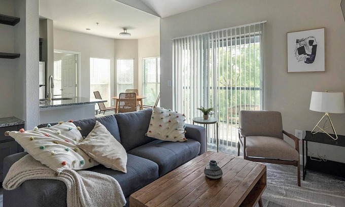 Welcome to Residences at River Park West in charming Richmond, TX. Our fully-furnished apartments feature chef-inspired full kitchens, oversized closets, fast WiFi, and private patios or balconies, perfect for short-term stays or extended visits. Dive into resort-style amenities like the sparkling pool with outdoor kitchen, 24-hour fitness center, billiards lounge, and pet-friendly park.