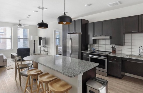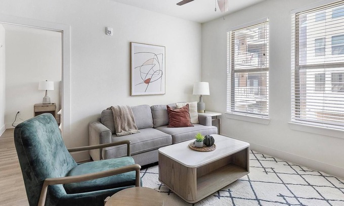 Welcome to The Standard River District in Fort Worth. Perfect for flexible stays, our fully-furnished apartments feature full kitchens, stylish furnishings, in-unit laundry, and fast WiFi. Right outside your door, enjoy premium amenities including a resort-style pool with lounging island, 24-hour fitness center with spin/yoga studio, club room, outdoor entertainment areas, and business center.