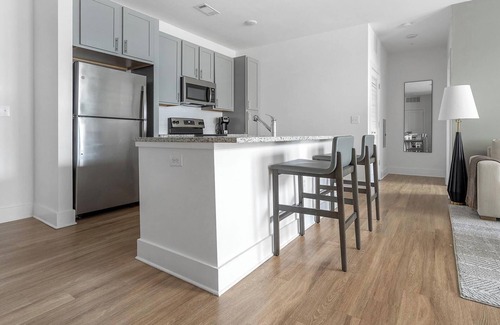 Just south of Charlotte in charming Indian Land, enjoy a flexible, fully furnished stay at The Mason at Six Mile Creek with the best of both worlds: peaceful suburban vibes and easy access to city life. Perfect for monthly or extended stays, our spacious apartments feature full kitchens with granite countertops, shaker-style cabinetry, stainless steel appliances, and fast WiFi. Start your day in the coworking loft or yoga room, then unwind by the resort-style pool or outdoor bar.