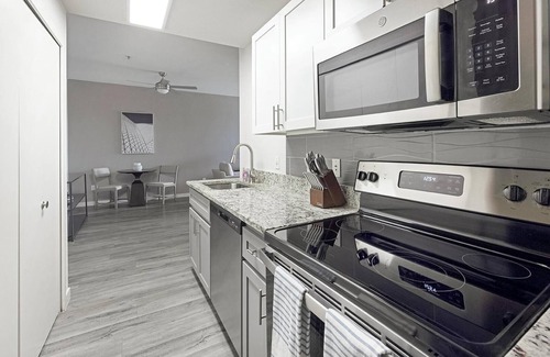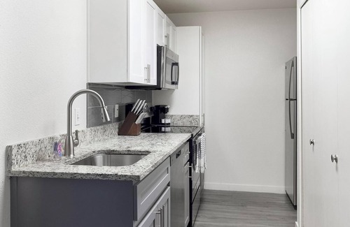 Stay in the heart of Tempe at The Access, just minutes from ASU, the light rail, and Mill Avenue’s buzzing food and nightlife scene. Our fully-furnished apartments are ideal for short-term, monthly, or extended stays, featuring full kitchens with modern appliances, in-unit laundry, and fast WiFi. Stay active at the rooftop basketball court, hit the spin room, or unwind at the resort-style pool and outdoor spa.