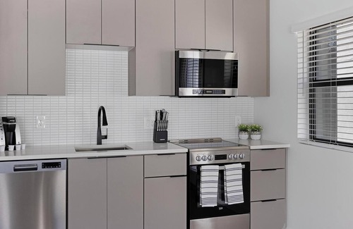 Located in the heart of Maricopa County, 2121 is perfect for monthly or extended stays. Our fully-furnished apartments feature soaring 9-foot ceilings, sleek stainless steel kitchens, and quartz countertops for a modern, elevated feel. Take a dip in the resort-style pool, hit your goals in the Technogym fitness center, or relax in the luxury clubhouse.