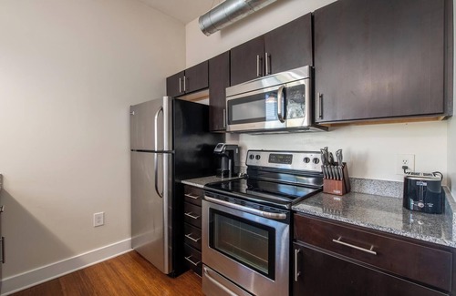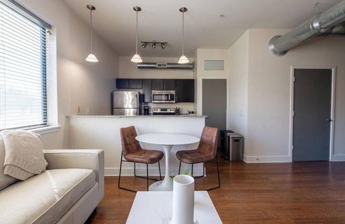Stay in style at Cedar Broad in downtown Richmond, ideal for flexible, monthly, or extended stays. Each apartment features open layouts, full kitchens with granite countertops, stainless steel appliances, and in-unit laundry. Relax with skyline views from the rooftop mezzanine, lounge by the pool, or work out in the 24-hour fitness studio. Just steps from Main Street Station, Jefferson Park, and local favorites like The Hard Shell and Grisette, you're surrounded by the best of the city.