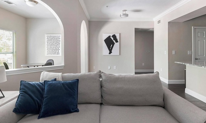 Welcome to Residences at River Park West in charming Richmond, TX. Our fully-furnished apartments feature chef-inspired full kitchens, oversized closets, fast WiFi, and private patios or balconies, perfect for short-term stays or extended visits. Dive into resort-style amenities like the sparkling pool with outdoor kitchen, 24-hour fitness center, billiards lounge, and pet-friendly park.