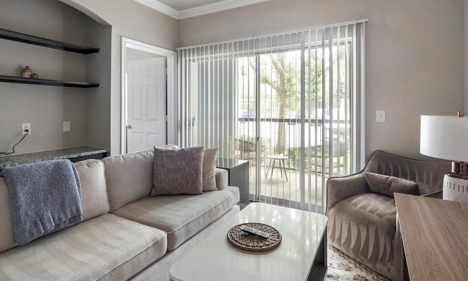 Welcome to Residences at River Park West in charming Richmond, TX. Our fully-furnished apartments feature chef-inspired full kitchens, oversized closets, fast WiFi, and private patios or balconies, perfect for short-term stays or extended visits. Dive into resort-style amenities like the sparkling pool with outdoor kitchen, 24-hour fitness center, billiards lounge, and pet-friendly park.