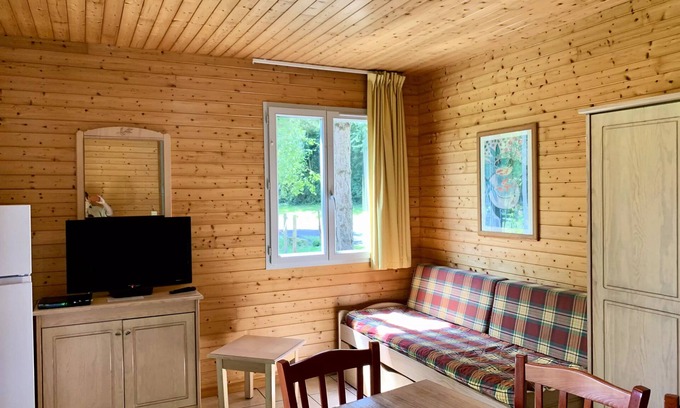 Details: Wi-Fi access : free in reception area (not in chalets) Playground for children : yes Sports animations : extra fishing, hiking, natutical activities... Pets allowed : 6€ / day (only one pet allowed per dwelling) Barbecue : electric barbecue rental Deposit (in supplement) : 250 Baby Kit : 25€/week (cot with bed linen, high chair and baby bath) Laundry kit : Bed linen + towels : 12€/person Laundromat : see on-site rates and regulations Bedding : €7/person Towels : 6€/person Final cleaning : supplement: 65€/housing Mini golf : fee - see on-site rates and regulations Number of stars : 3 Car park : free, at the entrance of the residence or at the foot of each cottage. bowling Ping Pong : free Swimming pool : outdoor pool not heated in close proximity open from mid-June to mid-September Possibility of bike rental : yes Restaurant : Restaurant / bar (for day and opening hours) Tourist tax (surcharge) : to be paid on site at current rate Television : in each dwelling Tennis : free Multisports ground : yes PMR Access Coffee maker Toaster Dishwasher Microwave oven Number of bedrooms : 2 Number of double bed : 1 Number of single beds : 2 Number of pieces : 3 Number of bathroom : 1 Cooking plate Fridge Surface (m²) : 41 Television Terrace