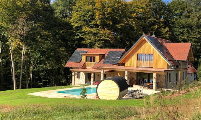 29 miles from Maribor Train Station in Dietersdorf am Gnasbach, Landvilla Sinelia premium provides accommodations with access to beauty services and fitness room. This villa offers air-conditioned accommodations with a patio. There's an outdoor fireplace and guests have access to free Wifi, free private parking, and an electric vehicle charging station. Offering a terrace and mountain views, the villa includes 3 bedrooms, 3 living rooms, satellite flat-screen TV, an equipped kitchen, and 4 bathrooms with a walk-in shower and a hot tub. Guests can take in the views of the pool from the balcony, which also has outdoor furniture. This villa is allergy-free and non-smoking. À la carte and continental breakfast options with warm dishes, local specialities, and fresh pastries are available. Guests may eat at the on-site family-friendly restaurant, which is open for dinner, lunch, cocktails, and high tea. The villa offers a variety of wellness options, including a sauna, a hot tub, and yoga classes. For guests with children, the villa features outdoor play equipment. If you like to discover the area, cycling, hiking and walking tours are possible in the surroundings and Landvilla Sinelia premium can arrange a bicycle rental service. Graz Airport is 32 miles from the property.