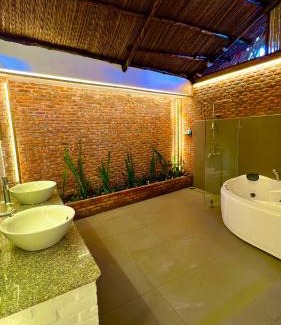 Providing sea views, Lang Ca Voi The Whales Village Mui Ne in Mui Ne provides accommodations, free bikes, an outdoor swimming pool, a garden, a terrace and barbecue facilities. The lodge features both WiFi and private parking free of charge. There's a private bathroom with shower in every unit, along with free toiletries, a hairdryer and slippers. An à la carte, continental or Asian breakfast is served at the property. Lang Ca Voi The Whales Village Mui Ne offers a hot tub. Popular points of interest near the accommodation include Ham Tien Beach, Fairy Spring and Rang Market. Lien Khuong Airport is 81 miles away, and the property offers a paid airport shuttle service.