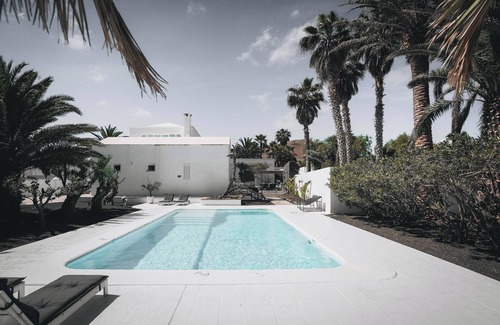 Luxury villa in the heart of Lanzarote. Enjoy the island in total privacy without the crowds of tourists. Generous interior, unique design. Fully equipped. Large garden with private heated pool, outdoor dining and seating, own gym and yoga room with roof terrace and outdoor shower. Convenient location for exploring the island, nearest beach 10 min.