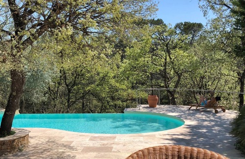 Superb property of more than 300 m2 in "Provence Verte", including 4 large double bedrooms on one level and a small independent chalet. Not overlooked, ideal for 2/3 families, in a large fenced and wooded park of 6000 m². This superb Villa with large volumes with large private infinity pool and large shaded terrace of 400 m2 offers you great benefits: