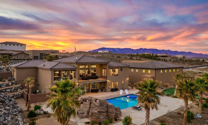 Welcome to the Grand Desert Oasis, your very own private resort! This new home, located near Zion National Park and Sand Hollow Resort, is one of the most spectacular vacation rentals in Southern Utah. It’s the perfect fusion of thrill and comfort for our active guests, relaxation seekers, and everyone in between! With 9 spacious bedrooms, 10 bathrooms, two full kitchens, and a detached casita, this 10,500 sq ft home offers an abundance of space for everyone. Moreover, it houses one of Southern Utah’s largest private backyard pools and jumprock, a mammoth indoor sports court, and a grand aquatic playground. Featuring an epic 200-foot slip and slide, a one of a kind splash pad, the H20 Hop Zone, and more! It's truly the ultimate getaway!