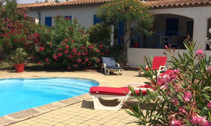 Villa for 8 people in Carcassonne. Large garden with trees (3000m) with swimming pool (4x9m). Near the Canal du Midi. 90 km from Toulouse, 150 km from Montpellier. Tourist region between sea (65 km) and mountains (Pyrenees).