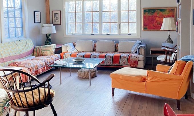 Converted barn on a 17-acre former/future farm. Secluded and rural, well-equipped with a full gourmet kitchen, tons of space, a deck and patio. Five bedrooms, two baths, large open kitchen/dining area/living room. Located between Bard College, the adorable village of Tivoli, and bustling Germantown village, all less than 10 minutes away. 20 minutes from downtown Hudson, NY. Fifteen minutes from Red Hook and Rhinebeck. The heart of the beautiful Hudson Valley!