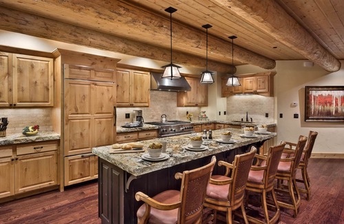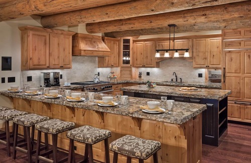 As you step inside Panorama Grande, you'll be greeted by soaring vaulted ceilings, striking exposed log beams, and grand custom log staircases. The property boasts outstanding amenities including gourmet kitchens equipped with high-end Wolf, Asko, and Sub-Zero appliances, perfect for catering your wedding feast. Enjoy evenings in the beautifully designed great rooms featuring stone fireplaces and expansive balconies, ideal for pre-ceremony gatherings or intimate receptions. After the festivities, unwind in the private backyard with dual hot tubs, making it the ultimate relaxation spot after a long day of celebrating.