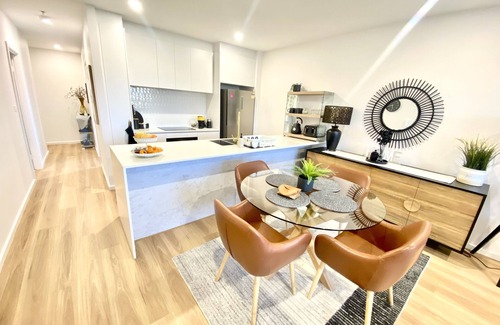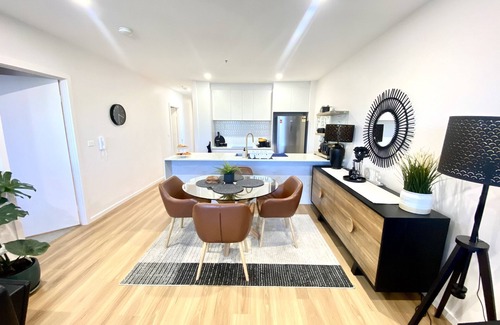 This deluxe and styled apartment has everything you need for your stay, large living area and 2 specious bedrooms with their own bathroom. Beautiful kitchen with fully equipped ,balcony make your trip difference too. swimming poor and gym in the building and came with 2 basement car spaces secured your car.
