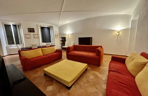 Large (180 sq mt) renovated 4 bedroom/3 bathroom apartment on lovely pedestrian street in historic town center of Sestri Levante. The apartment is in a clean, well-maintained & elegant building a few meters on foot from beaches, the hiking network, supermarkets & restaurants – allowing you to move around with a car. It is a 10 minute walk from the train station, convenient for those arriving without a car.