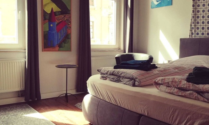Spacious apartment with two bedrooms and comfortable beds, a living room and everything you will need to make yourself at home. The location is fantastic, near the city center, St. Thomas Church, Gewandhaus, University district, Karl-Liebknecht-Strasse, and yet we are on a quiet side street Public transport is very convenient to the apartment with the station Bayrischer Bahnhof only 5 minutes walk away.